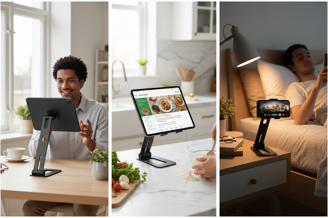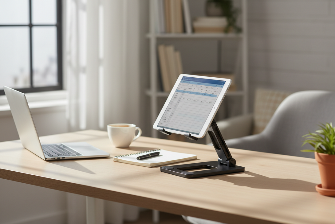 Organize your workspace with the Workzen™ FlexiDesk Phone & Tablet Stand — designed to hold your devices securely while keeping them visible and accessible.