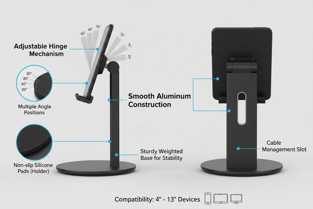 Non-slip silicone pads protect your devices and prevent the stand from sliding, making it perfect for modern desks.