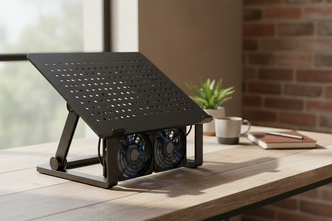 Keep your laptop cool and ergonomic with the Workzen™ Adjustable Laptop Cooling Stand.